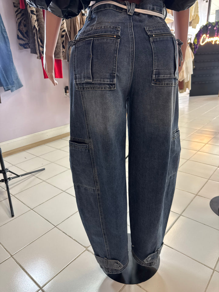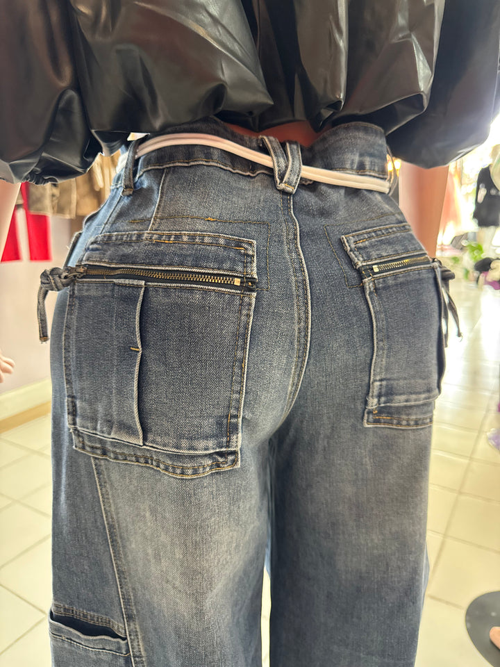 Medium stone rope belt denim